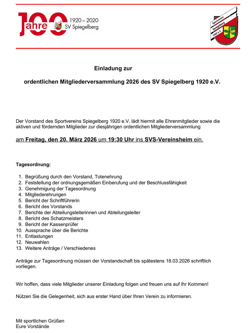 SV Spiegelberg e.V. Lerchenstr. 40 71579 Spiegelberg